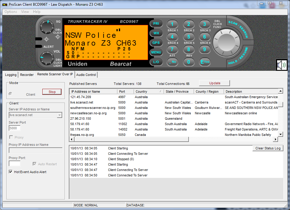 Another way to listen to the stream is with the fantastic software from ProScan using their client.